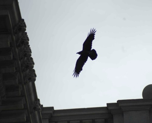My interest in ravens started in earnest a few years ago. I stopped to watch a raven flying at 7th and Mission above the plaza of the new federal building. It was a beautiful thing. What really got my attention though was when it flew into a nest high up on a federal courthouse.