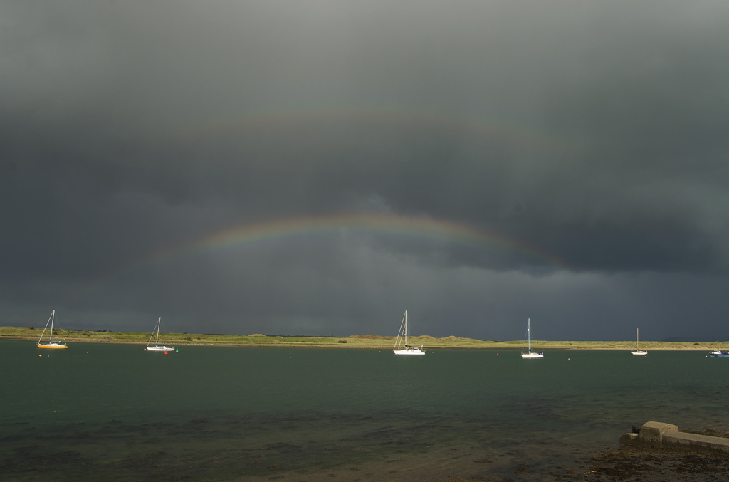 My favorite factoid of the night is that although what we see a rainbow as a static thing up in the sky, what that rainbow actually is is an animated mosaic projected onto our eyes — millions of rain drops bending light in our direction, changing colors until they fall “out of the picture.” followed and replaced by the raindrops above.